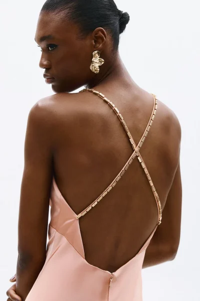 Οι τιράντες διασταυρώνονται κομψά στην ανοιχτή πλάτη