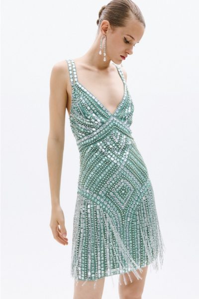 Φόρεμα μίνι σε χρώμα μέντας με ασημένιες λεπτομέρειες