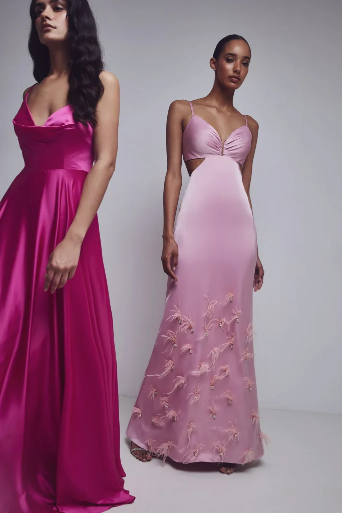 Dusty pink long dress with feathers
