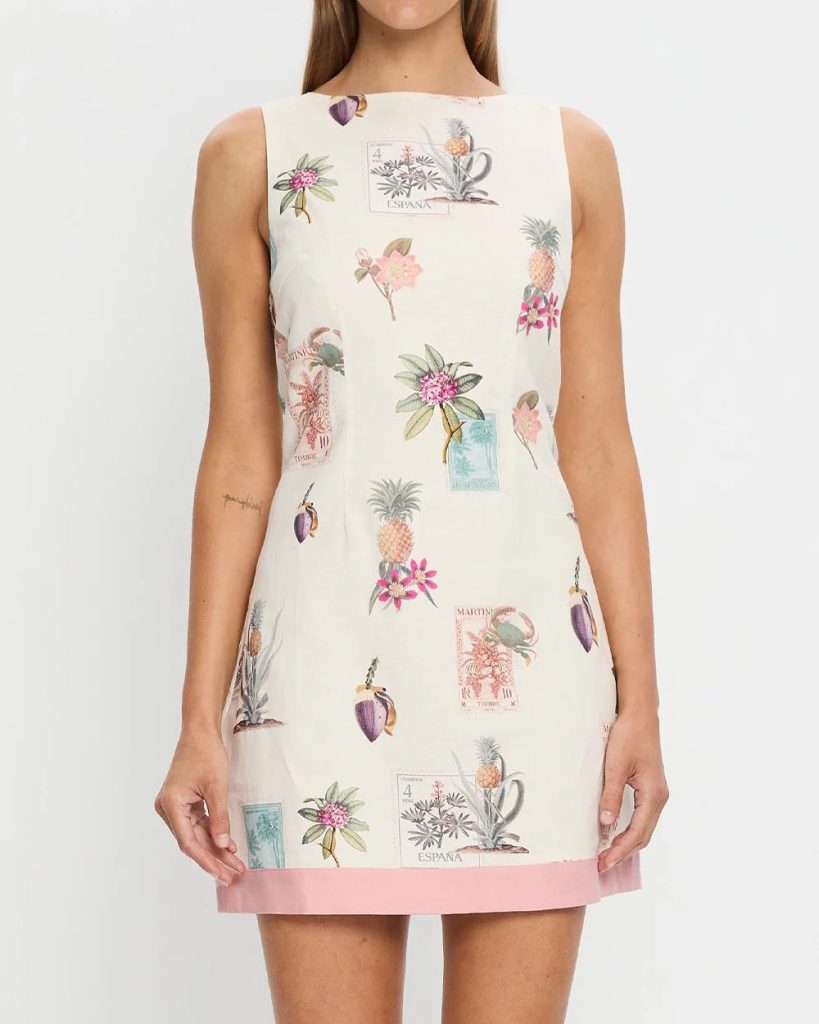 Φόορεμα μίνι με υπέροχα σχέδια από βαμβάκι και λινό κλείνει με φερμουάρ στο πλάι και έχει κορδόνι για σταθερότητα στις ράντες.