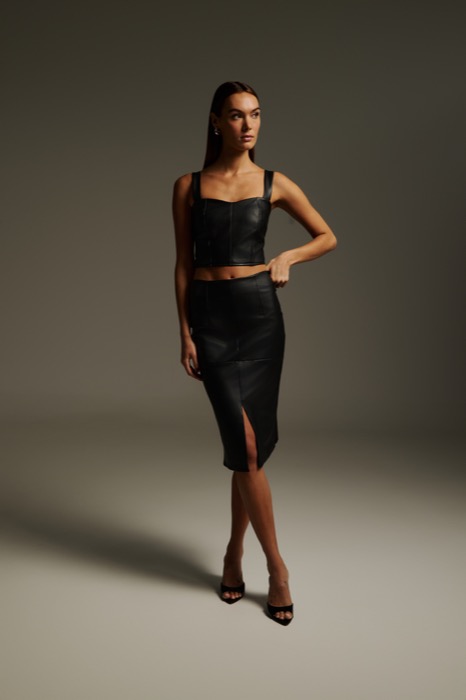 Φούστα Δερμάτινη Με Σκίσιμο Εμπρός