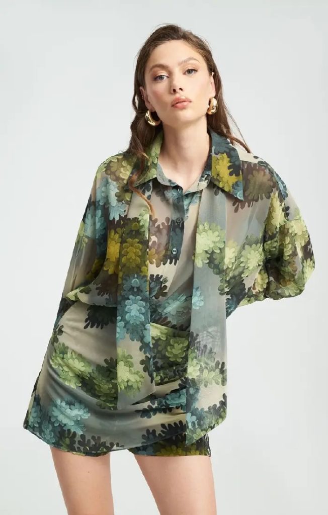Σετ πουκάμισο σορτς πράσινο Πράσινο πουκάμισο γυναικείο ημιδιάφανο με δική του ζώνη. ONE SIZE Καλύπτει στήθος έως 140cm