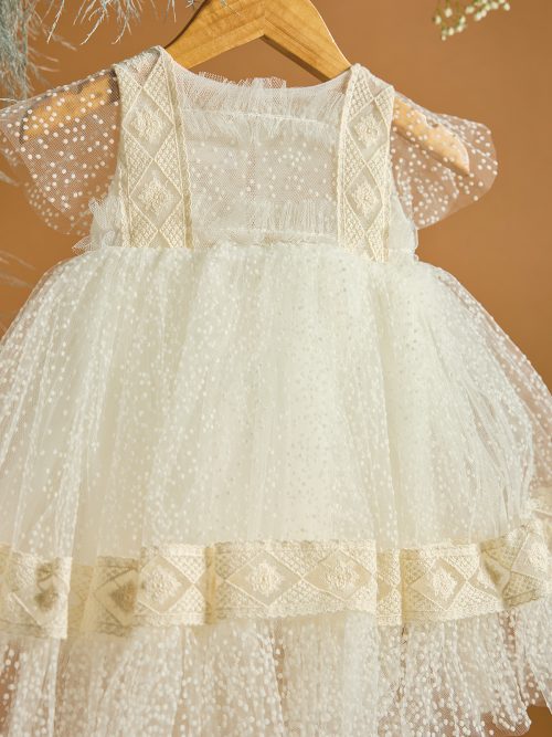 Βαπτιστικό φόρεμα εκρού με φτερά και ψιλό πουά τούλι