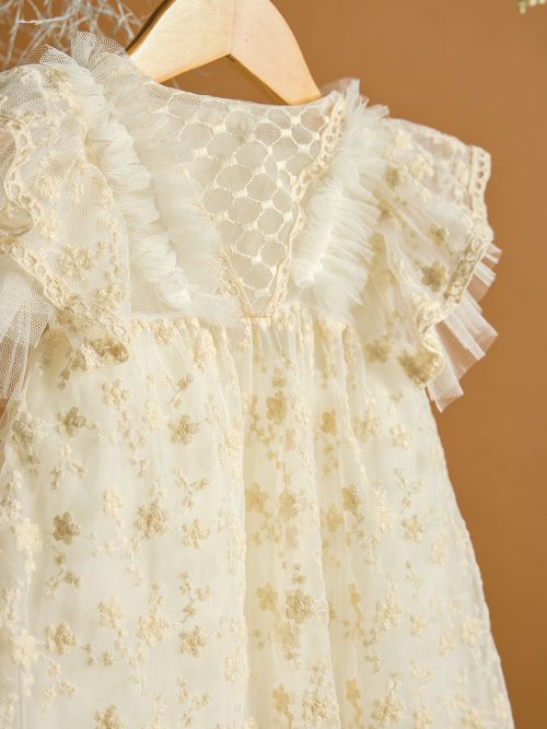 Βαπτιστικό φόρεμα εκρού δαντέλα με ανάγλυφα λουλουδάκια