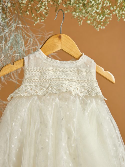 Βαπτιστικό φόρεμα εκρού πουά με διαφανές ντεκολτέ