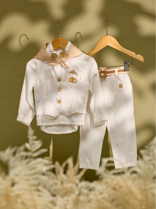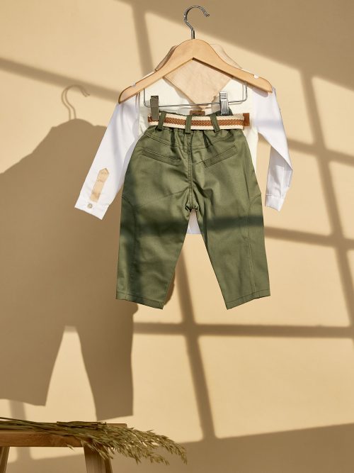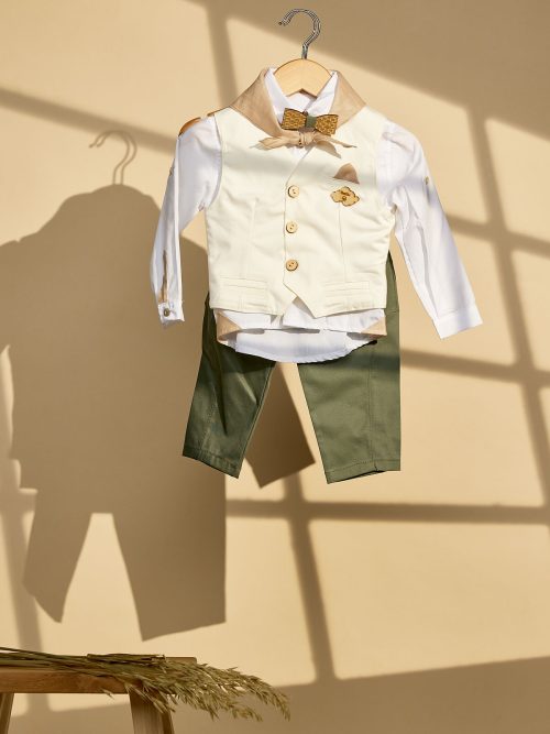 Βαπτιστικό σύνολο με χακί παντελόνι και υπόλευκο γιλέκο