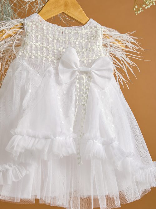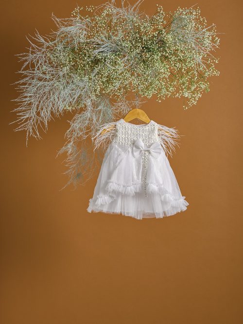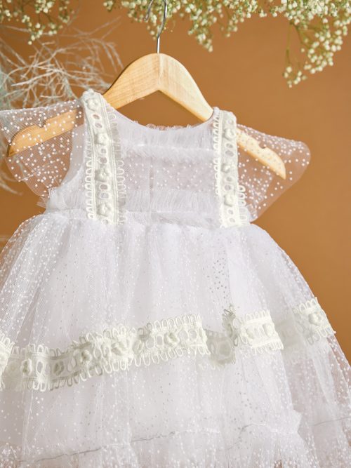 Βαπτιστικό φόρεμα εκρού με φτερά και ψιλό πουά τούλι