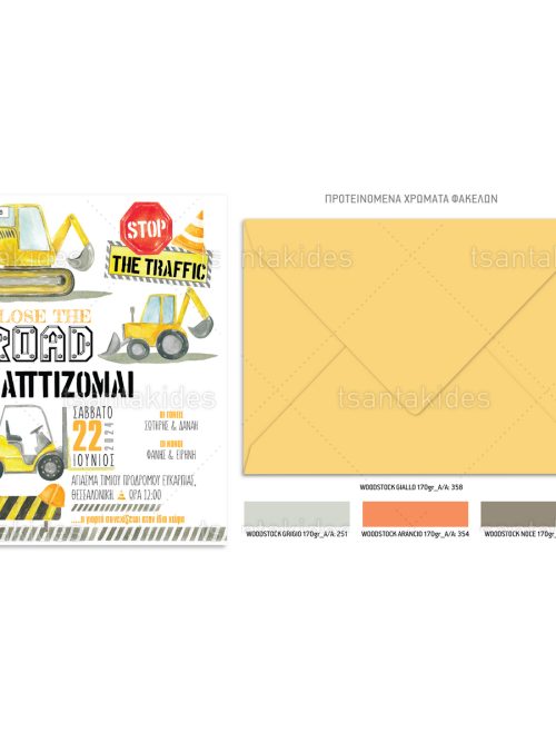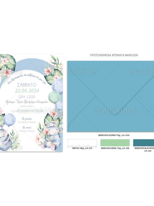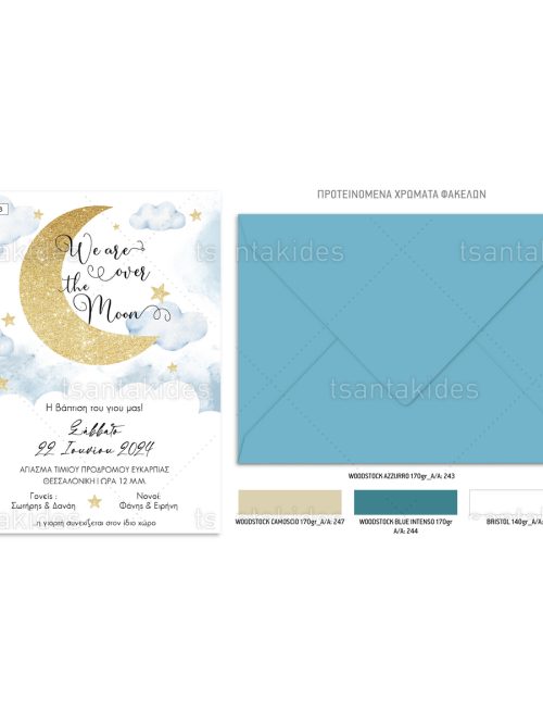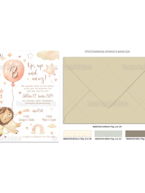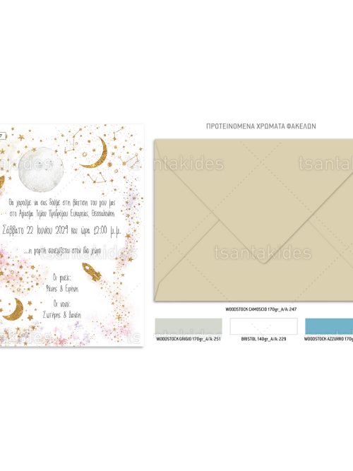 Το προσκλητήριο διαθέτει φάκελο διάστασης 19,5x14,5cm 140-170gr