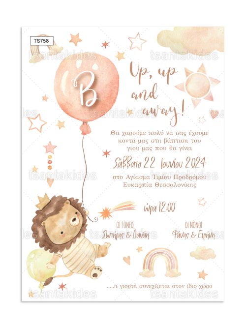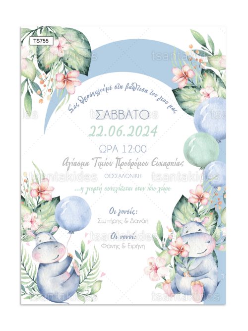 Προσκλητήριο βάπτισης με θέμα Παπαγαλάκι