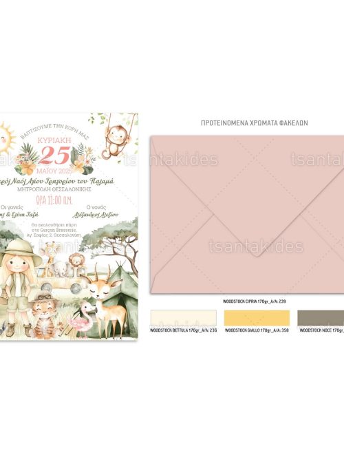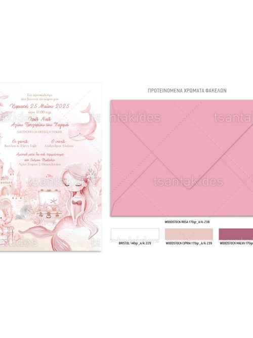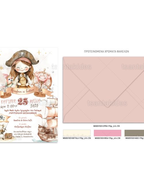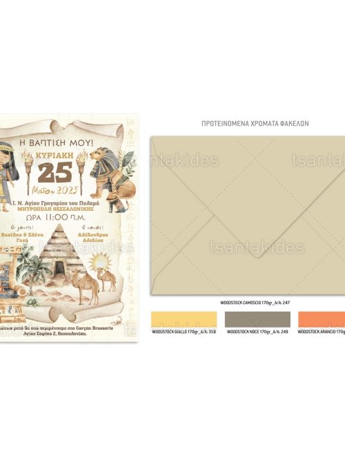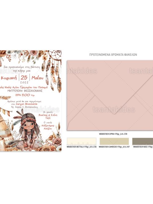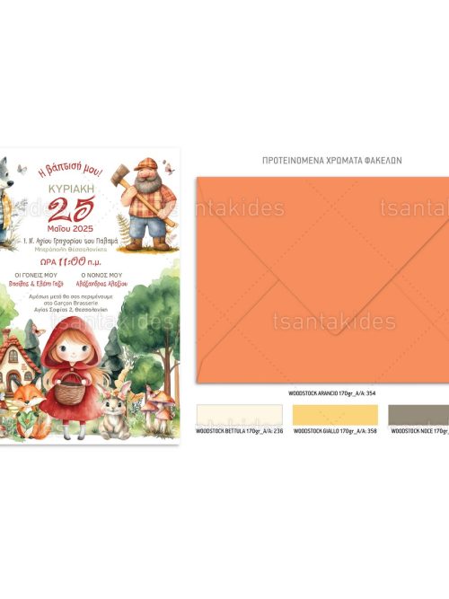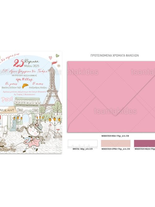 Το προσκλητήριο διαθέτει φάκελο διάστασης 19,5x14,5cm 140-170gr