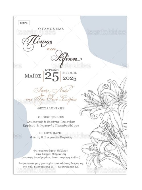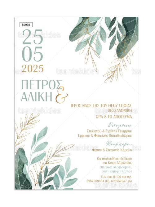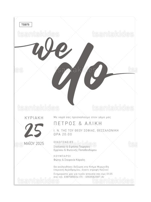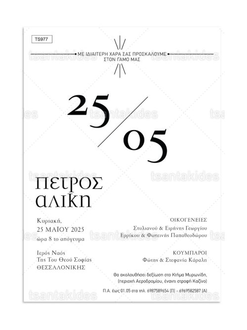 H κάρτα του προσκλητηρίου είναι τυπωμένη σε λευκό ματ χαρτί 250γρ.