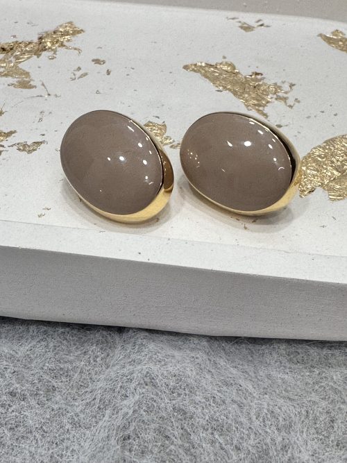 – Επιχρυσωμένο σκουλαρίκι – Μπεζ γυαλιστερή πέτρα – Σκουλαρίκια Καρφωτά – Υποαλλεργικά