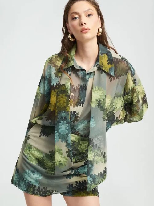Πράσινο πουκάμισο γυναικείο ημιδιάφανο με δική του ζώνη.