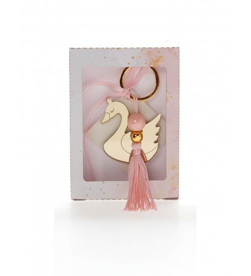 Μπομπονιέρα σε χάρτινο κουτάκι ροζ με αρωματική βάση ρόμβος και χρυσό πλέξιγκλας με σχέδιο κύκνος Το προϊόν διατίθεται σκέτο ή έτοιμη μπομπονιέρα , με 3 ή 5 κουφέτα