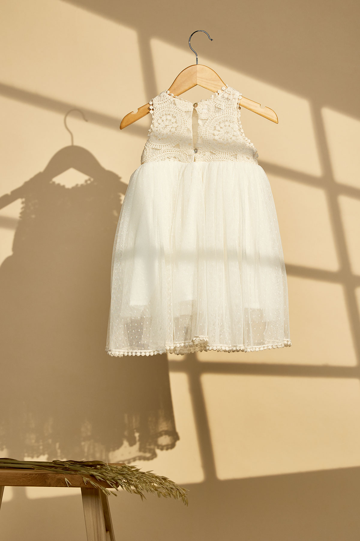 Βαπτιστικό φόρεμα εκρού με στρόγγυλη δαντέλα τσιγγελάκι