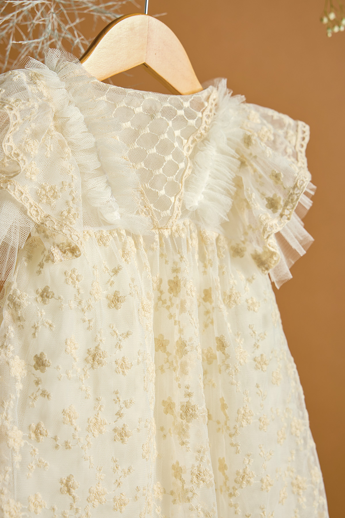 Βαπτιστικό φόρεμα εκρού τουνίκ με λουλουδάκια και ρόμβους