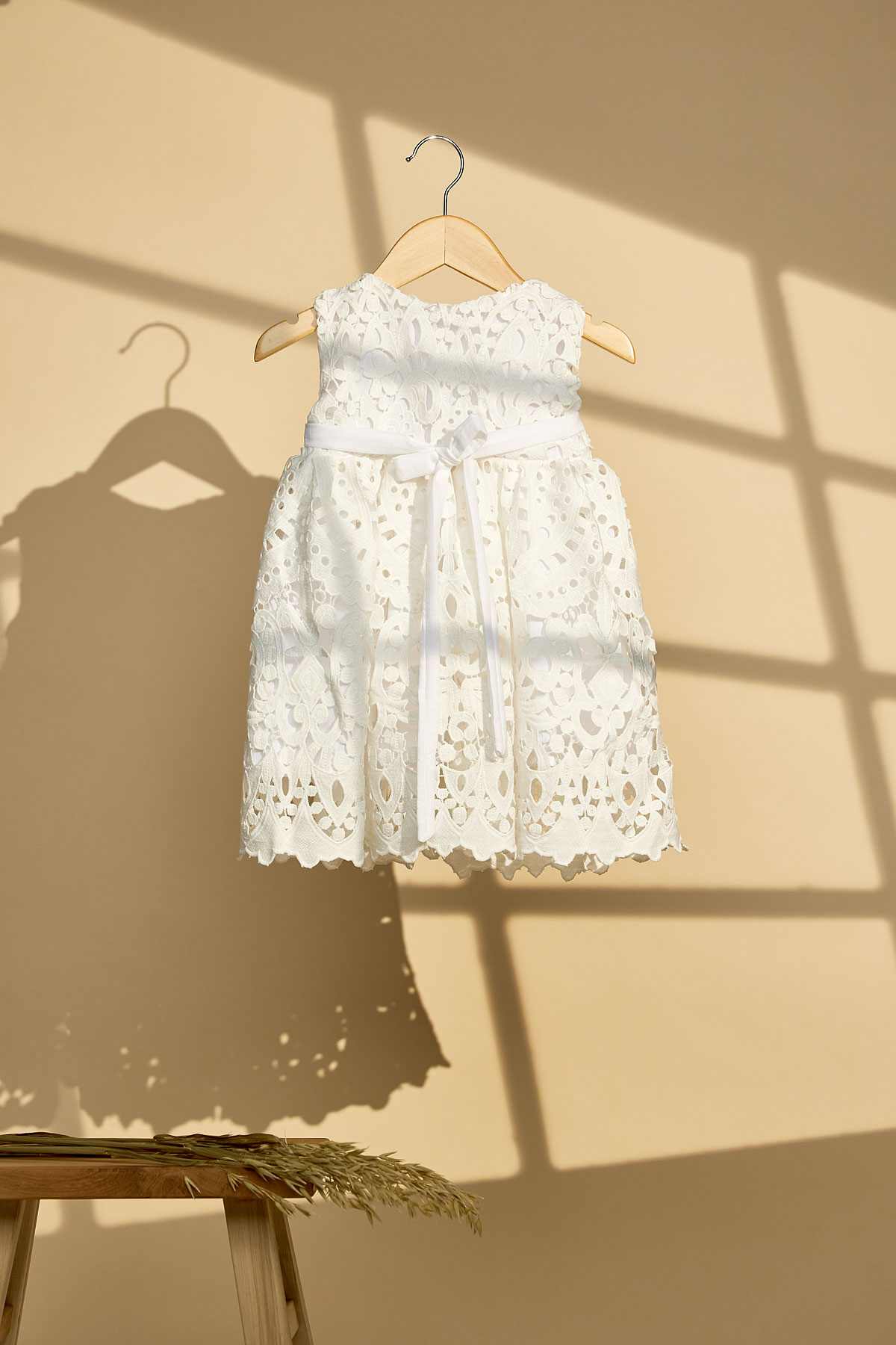 Ένα μοναδικό βαπτιστικό φόρεμα με το ιδιαίτερο broderie ύφασμα.Εάν θέλετε ΄να βαπτιστικο χωρίς τούλι και σε πιο λιτή γραμμή τότε σίγουρα το συγκεκριμένο θα είναι στις επιλογές σας.Μπορείτε να επιλέξετε όποιο χρώμα επιθυμείτε προς αντικατάσταση της λευκή ζώνης.Στην τιμή περιλαμβάνεται η κορδέλα για τα μαλλιά.