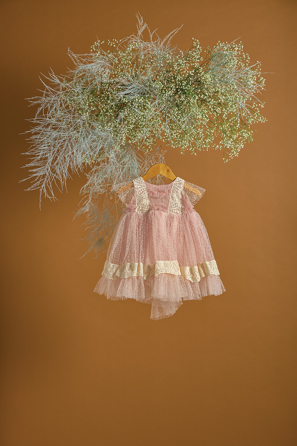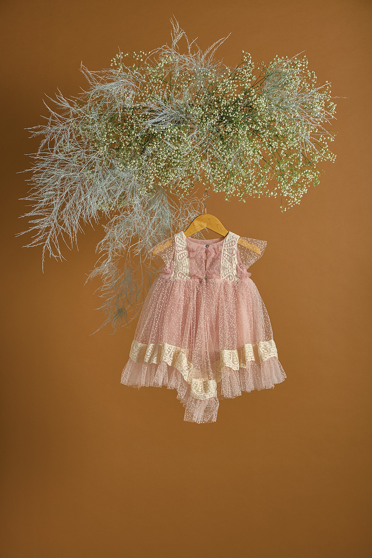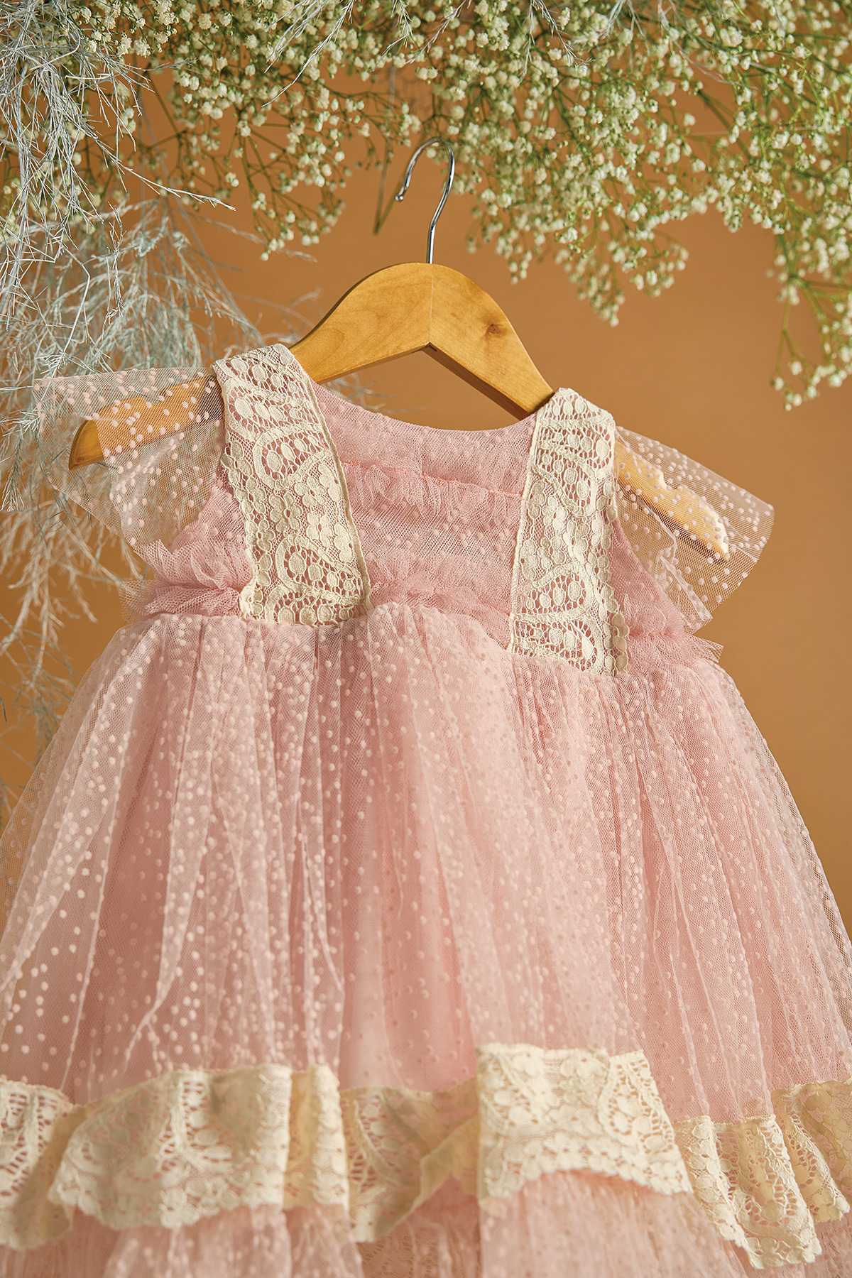Ένα βαπτιστικό φόρεμα σε σάπιο μήλο χρώμα και πουά pattern με την αγαπημένη μας διακριτική ουρά στο πίσω μέρος. To πουά τούλι δημιουργεί βολάν στο τελείωμα του φορέματος. Έτσι δημιουργείται όγκος και κίνηση στο φόρεμα. Η δαντέλα στο μπούστο και στην πλάτη συναντάται και στο τε΄λείωμα του φορέματος στη βάση του πουά βολάν. Με αυτόν τον τρόπο τονίζεται το βολάν του φορέματος. Συνδυάστε το με εκρού χειροποίητη τσάντα και βουάλ φιόγκο ημιδιάφανο με αποξηραμένα και υφασμάτινα λουλούδια. Στην τιμή περιλαμβάνεται και η τούλινη κορδέλα για τα μαλλιά.