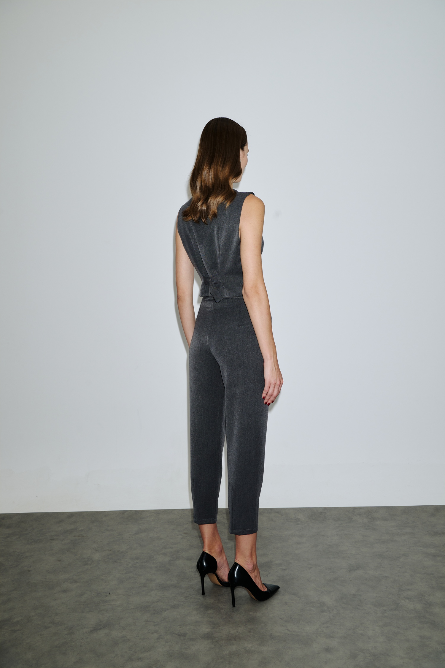 Γκρι Μακρύ Γιλέκο Με Δαντέλα Πίσω