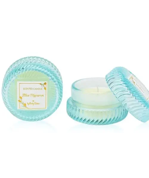 Μπομπονιέρες βάπτισης κερί macaron σιέλ