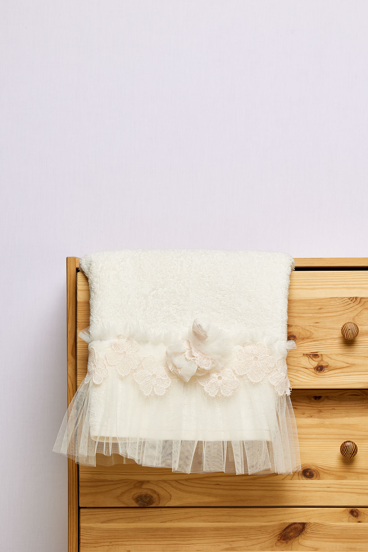 Λαδόπανα εκρού κορίτσι με εκρού δαντέλα τριαντάφυλλα και λουλούδι τούλινο