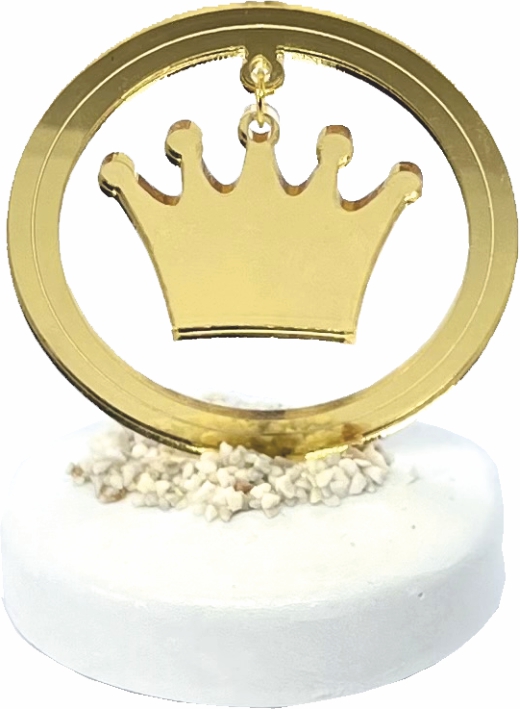 Μπομπονιέρα βάπτισης κύκλος με κορώνα με Χρυσό ή Ασημί Plexiglass σε κεραμική βάση.