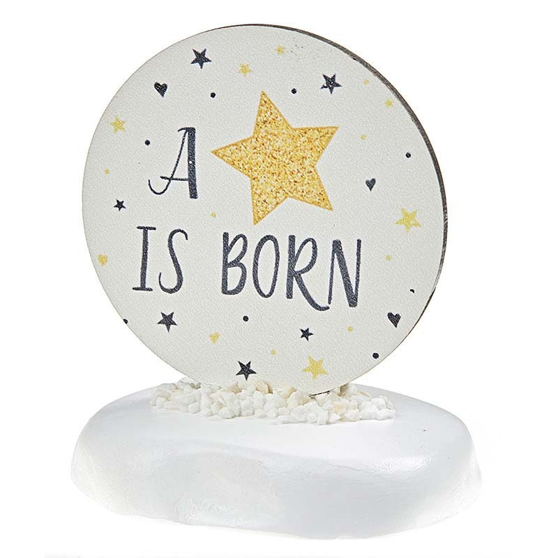 Μπομπονιέρα με ξύλινη χρωματιστή εκτύπωση αστέρι σε κεραμική βάση.