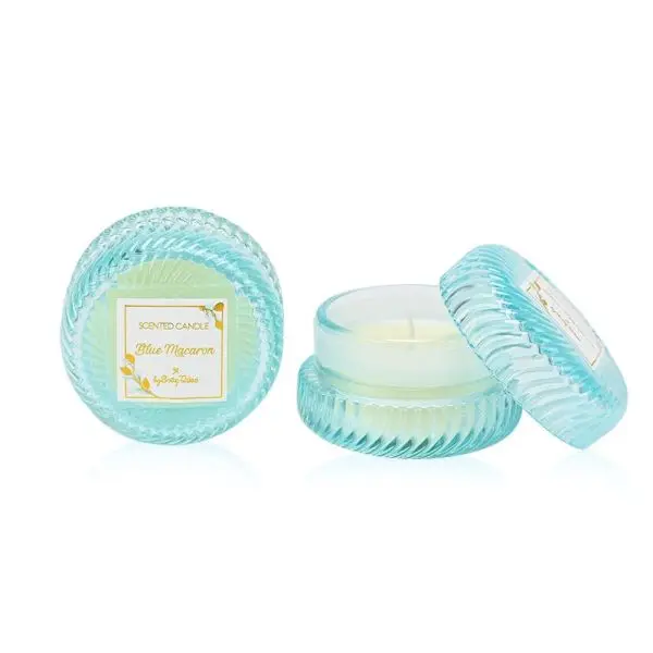 Aρωματικό κερί μακαρόν σιέλ με άρωμα sugar blue 50gr. Διαστάσεις 7 εκ. διάμετρος x 5 εκ. ύψος.