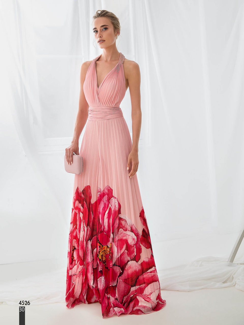 Σατέν Ροζ Μάξι Φόρεμα Με Ένα Μανίκι
