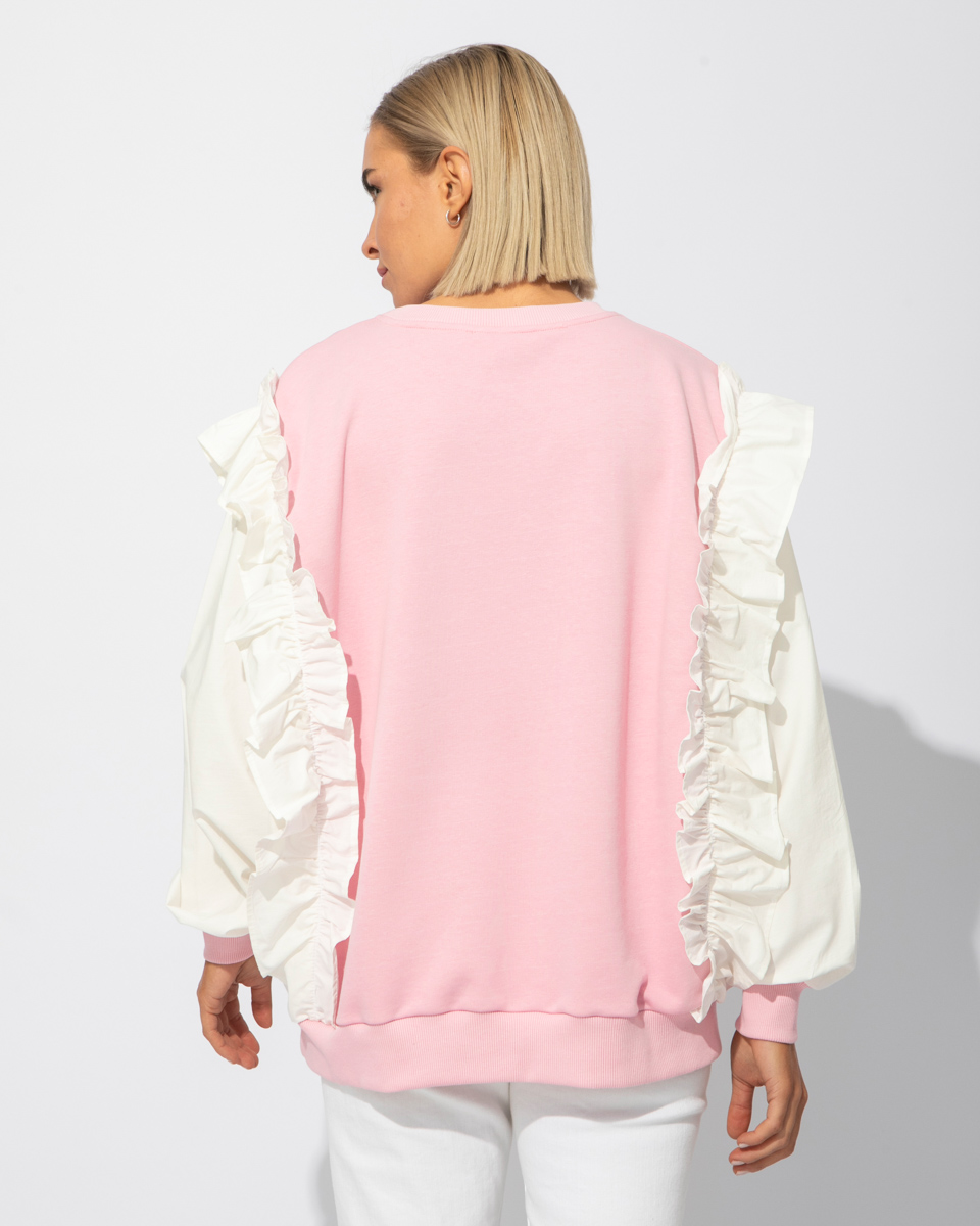φούτερ ροζ με με μανίκια από ποπλίνα.