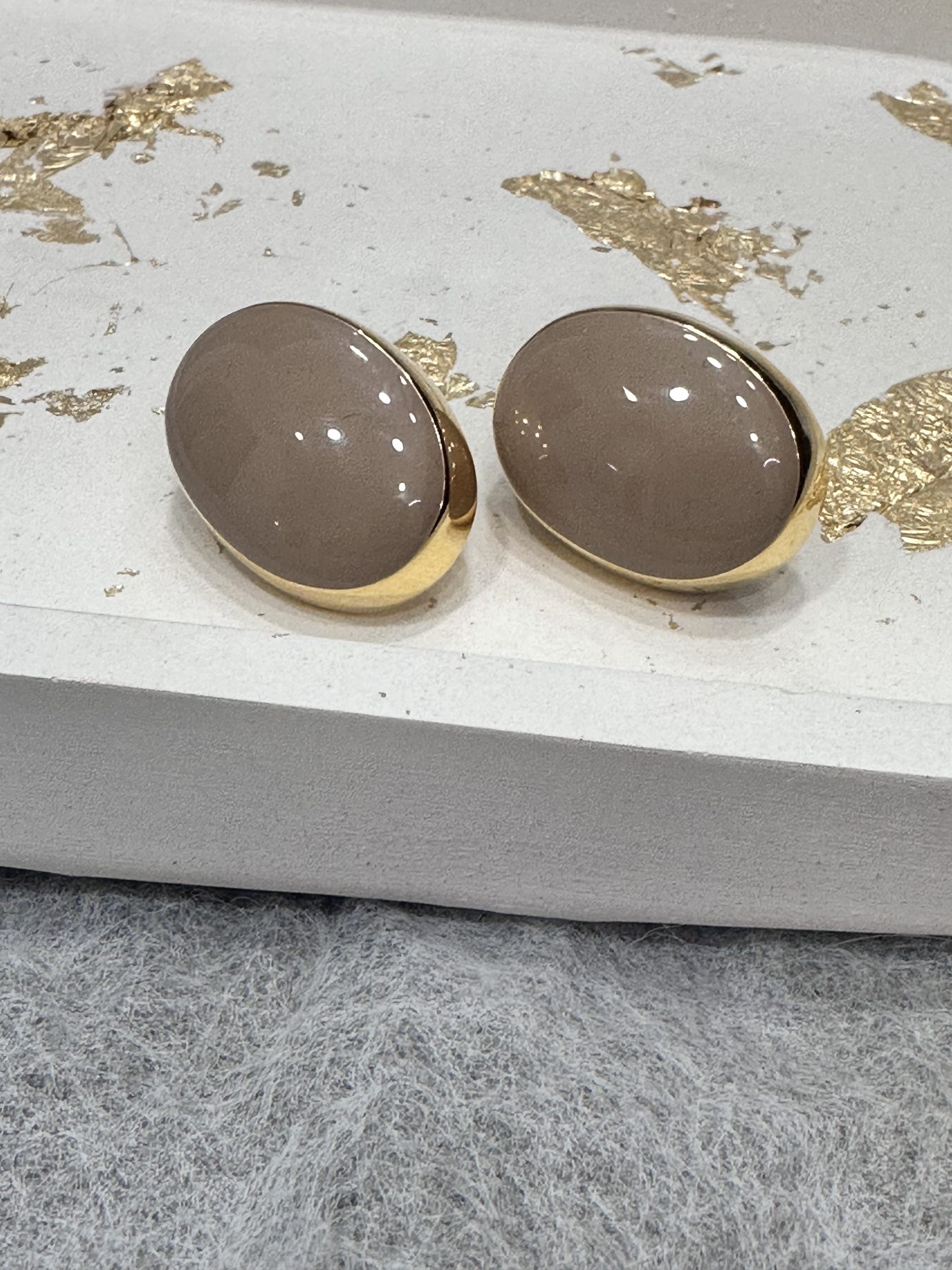 Σκουλαρίκια με μπεζ πέτρα καρφωτά