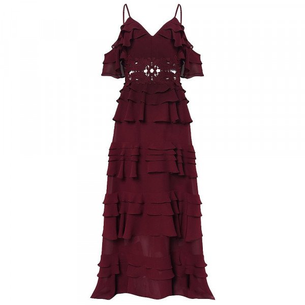 Burgundy Ruffle Maxi Dress