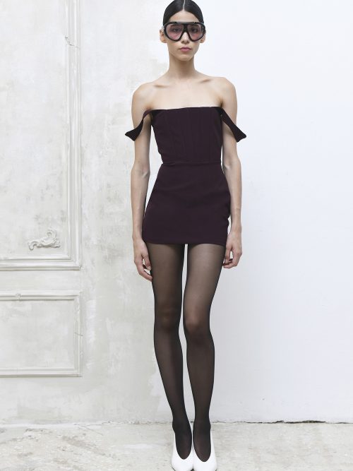 Διαθέτει εφαρμοστό μπούστο και φούστα.