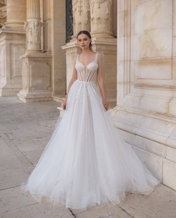 Λευκό bandeau γοργονέ μάξι φόρεμα με ύφασμα από τούλι και αποσπώμενο το κάτω κομμάτι με τα βολάν. Με ντραπαρίσματα στο πάνω κομμάτι μέχρι το γόνατο , εσωτερική φόδρα και ασημί φερμουάρ στην πλάτη. ΛΕΠΤΟΜΕΡΕΙΕΣ Λευκό Bandeau Γοργονέ Μάξι φόρεμα Ύφασμα από τούλι Αποσπώμενο το κάτω κομμάτι με τα βολάν Ντραπαρίσματα στο πάνω κομμάτι μέχρι το γόνατο Φόδρα Ασημί φερμουάρ στην πλάτη ΥΛΙΚΟ 100% POLYESTER