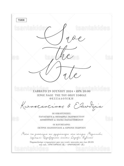 H κάρτα του προσκλητηρίου είναι τυπωμένη σε λευκό ματ χαρτί 250γρ.