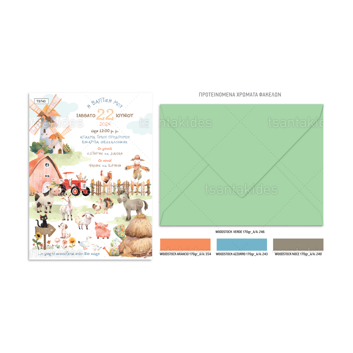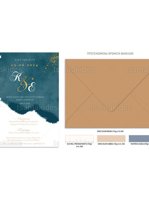 Το προσκλητήριο διαθέτει φάκελο διάστασης 15x22cm σε χαρτί της επιλογής σας από τους αναγραφόμενους κωδικούς.