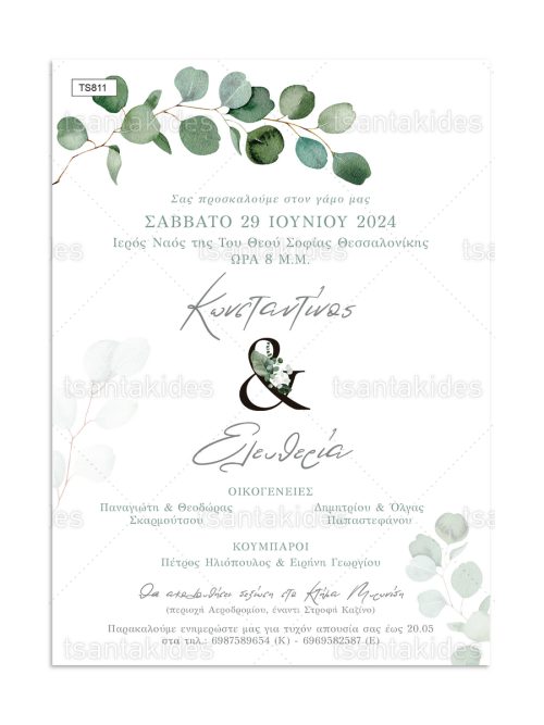 H κάρτα του προσκλητηρίου είναι τυπωμένη σε λευκό ματ χαρτί 250γρ.