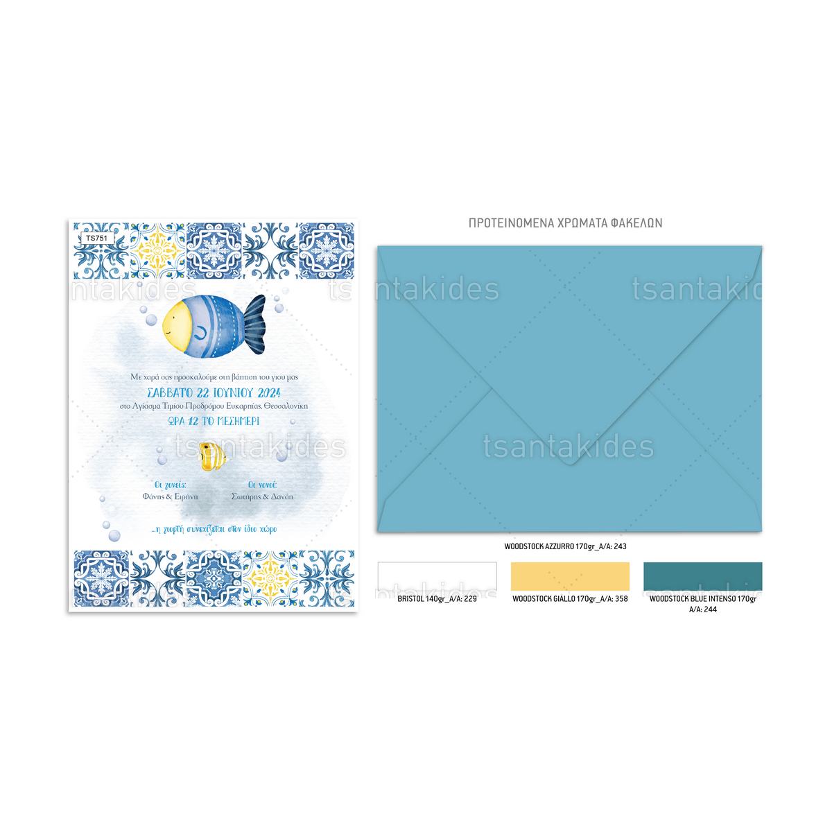 Το προσκλητήριο διαθέτει φάκελο διάστασης 15x22cm σε χαρτί της επιλογής σας από τους αναγραφόμενους κωδικούς.