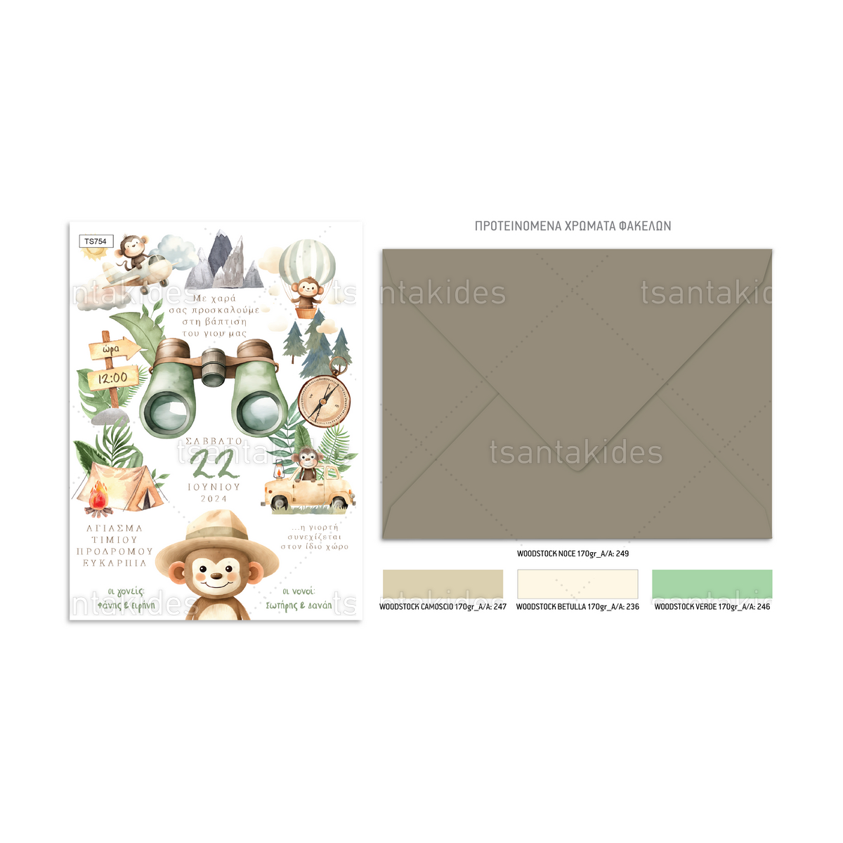 Το προσκλητήριο διαθέτει φάκελο διάστασης 15x22cm σε χαρτί της επιλογής σας από τους αναγραφόμενους κωδικούς.