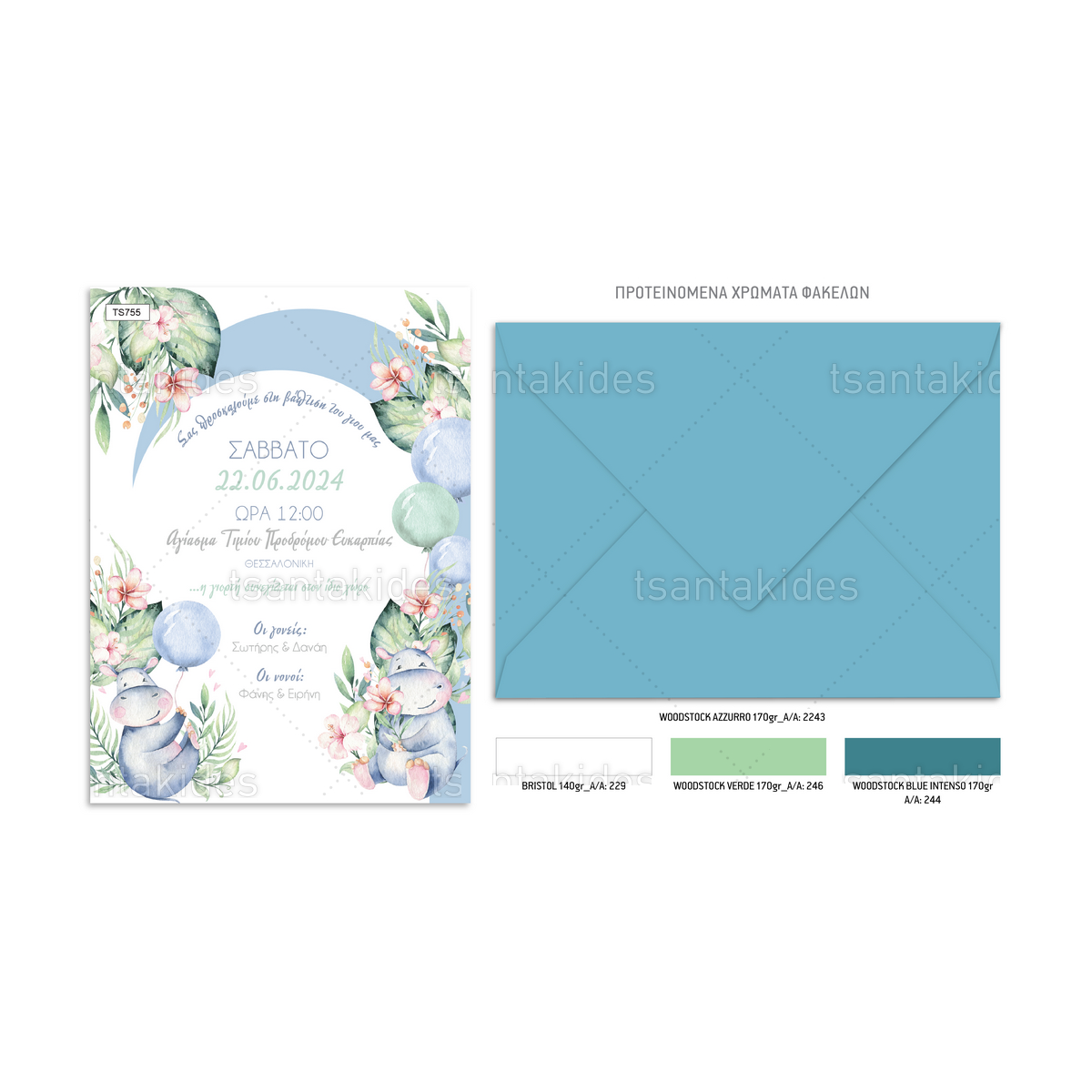 Το προσκλητήριο διαθέτει φάκελο διάστασης 15x22cm σε χαρτί της επιλογής σας από τους αναγραφόμενους κωδικούς.