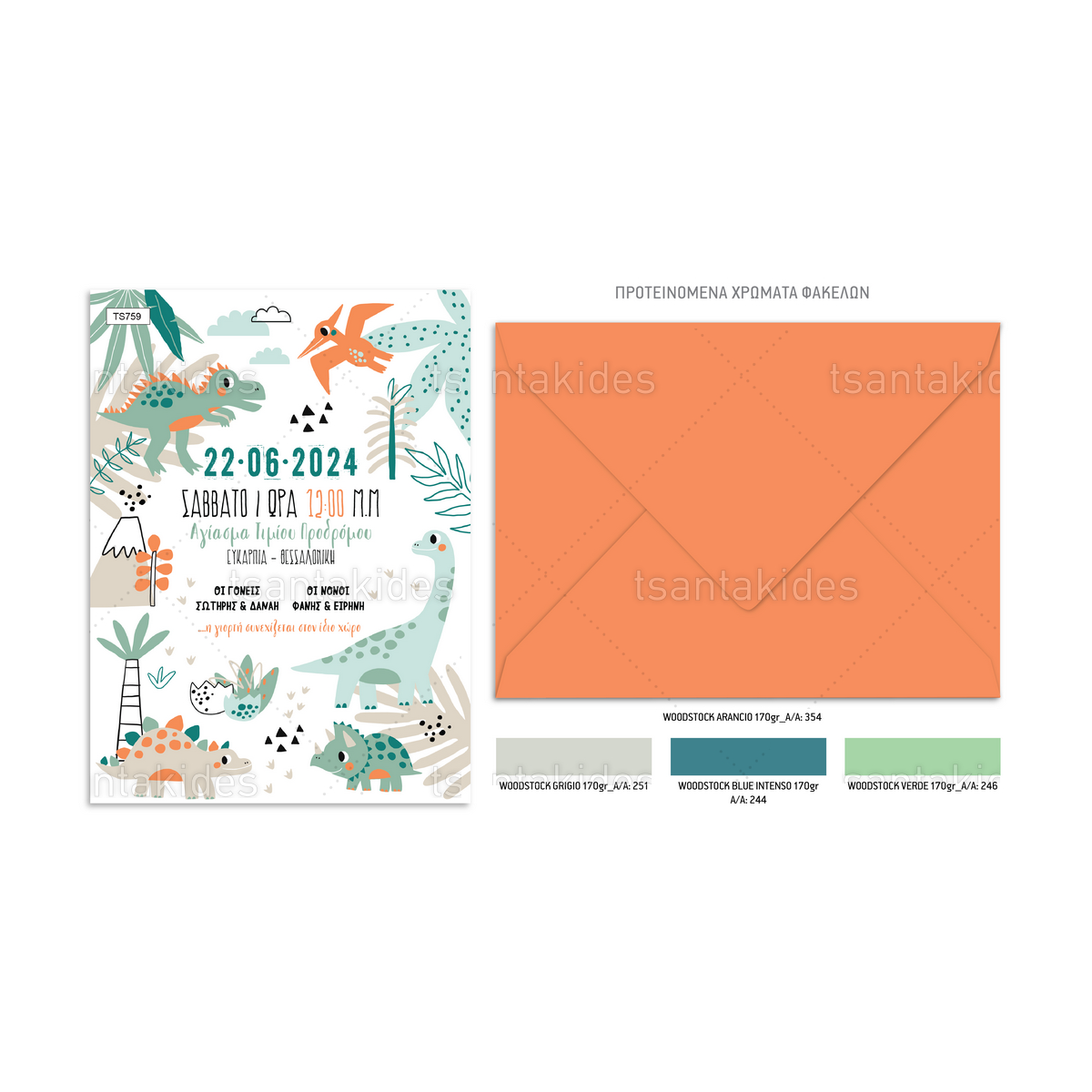 Το προσκλητήριο διαθέτει φάκελο διάστασης 15x22cm σε χαρτί της επιλογής σας από τους αναγραφόμενους κωδικούς.