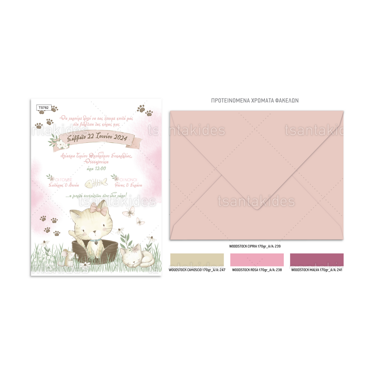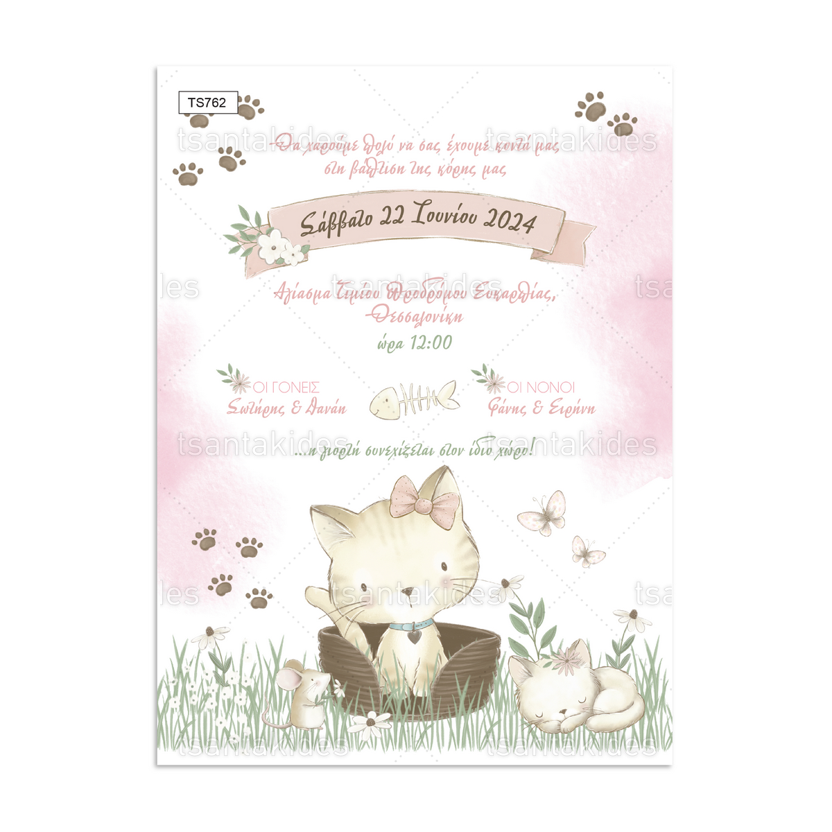 Προσκλητήριο βάπτισης με θέμα γατάκι