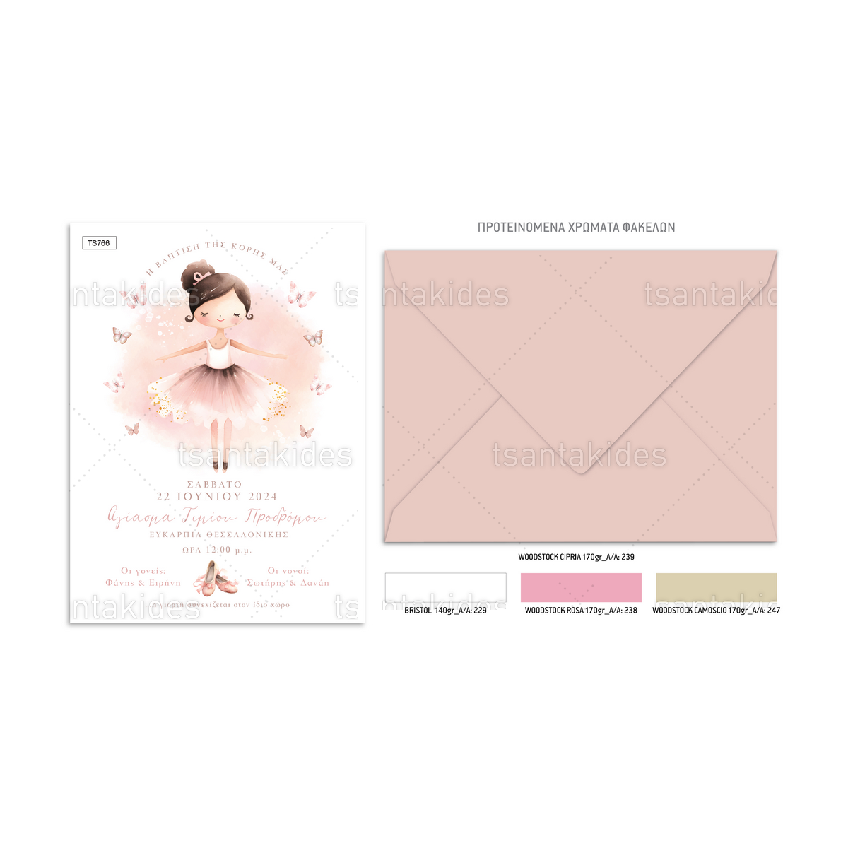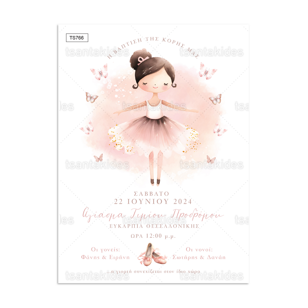Προσκλητήριο βάπτισης με θέμα Μπαλαρίνα