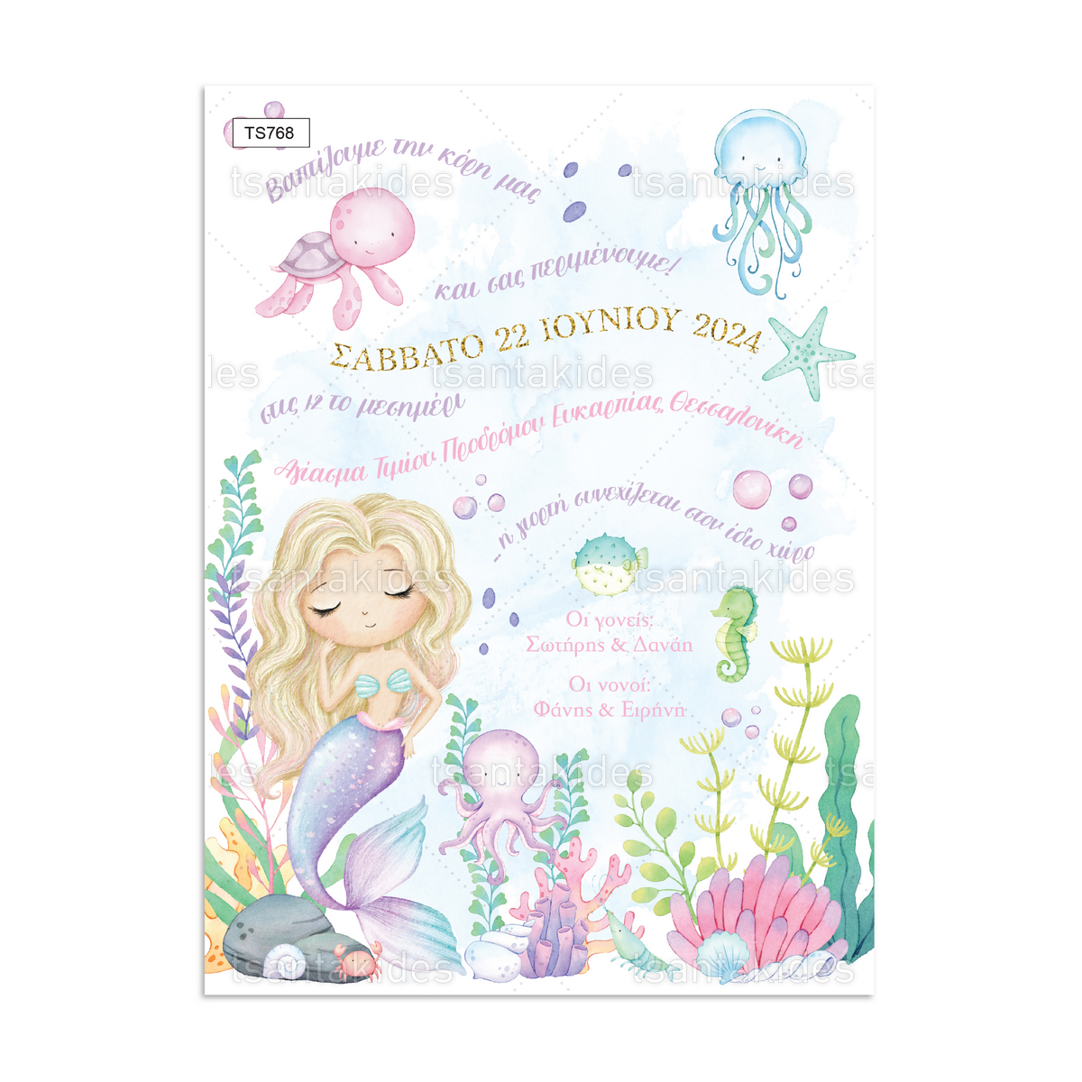 Προσκλητήριο βάπτισης με θέμα γοργόνα