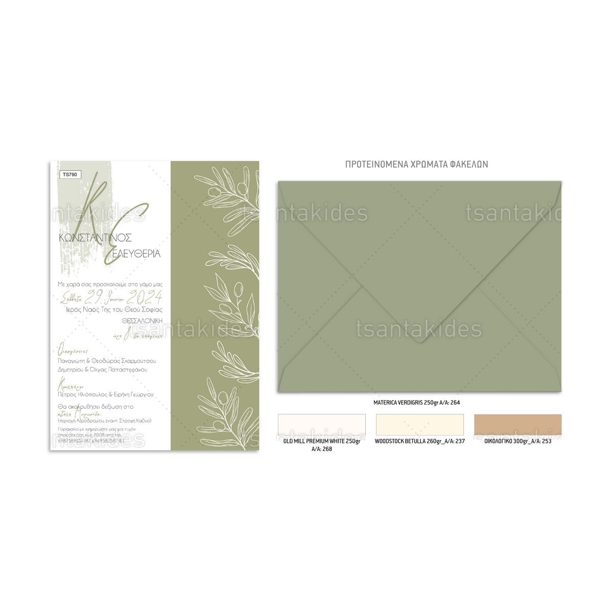 Το προσκλητήριο διαθέτει φάκελο διάστασης 15x22cm σε χαρτί της επιλογής σας από τους αναγραφόμενους κωδικούς.