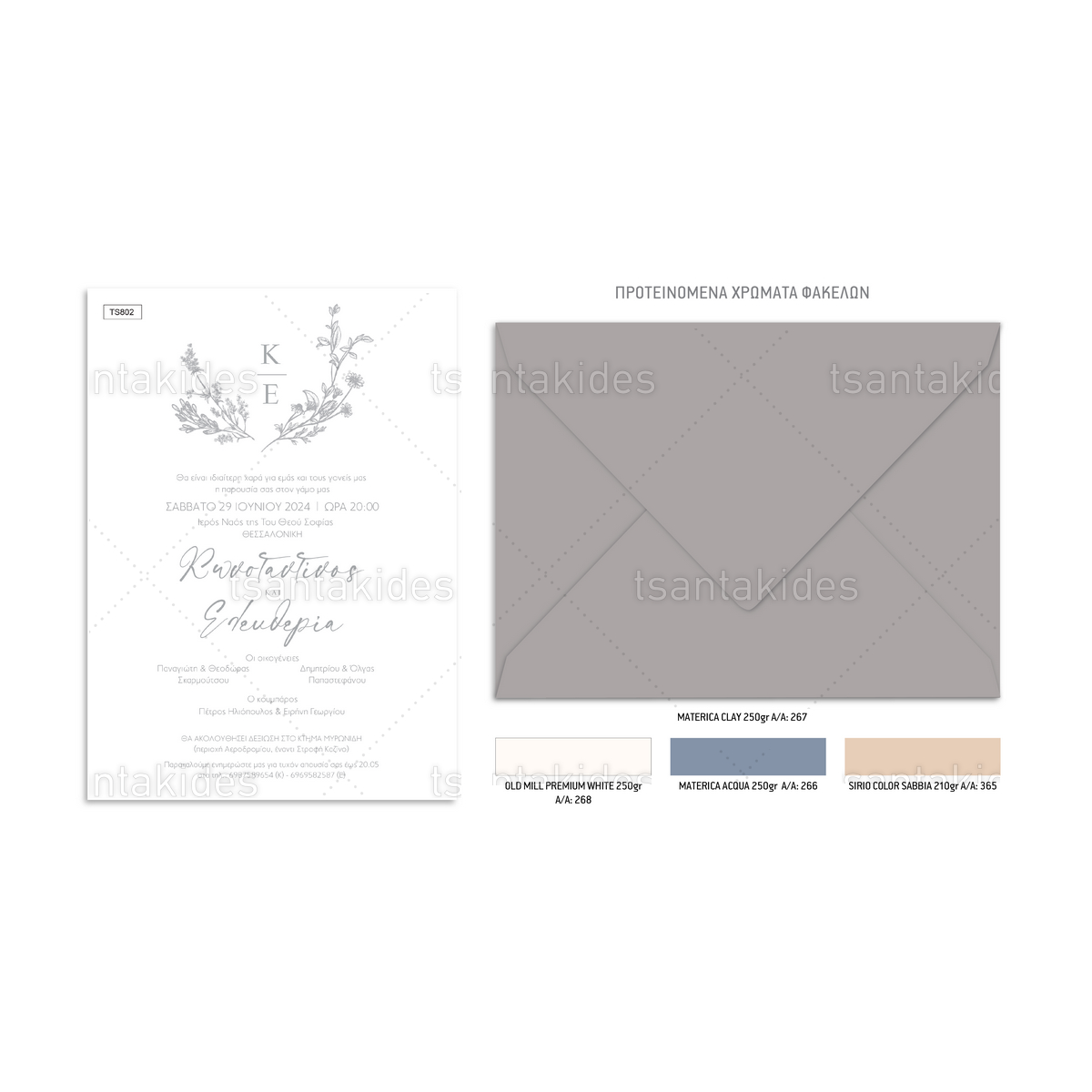 Το προσκλητήριο διαθέτει φάκελο διάστασης 15x22cm σε χαρτί της επιλογής σας από τους αναγραφόμενους κωδικούς.