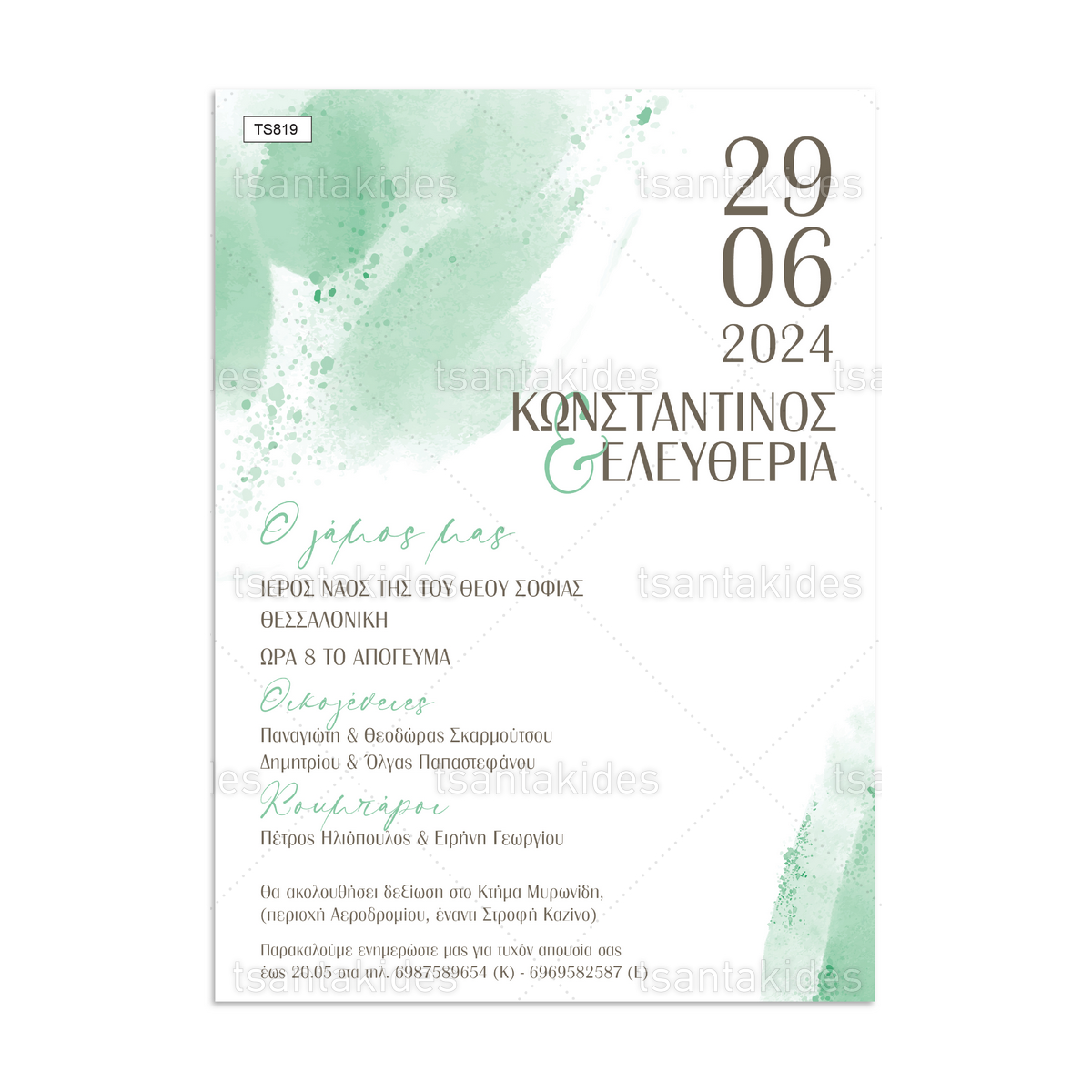 Η τιμή αφορά 1 τεμάχιο προσκλητήριου με φάκελο μαζί.