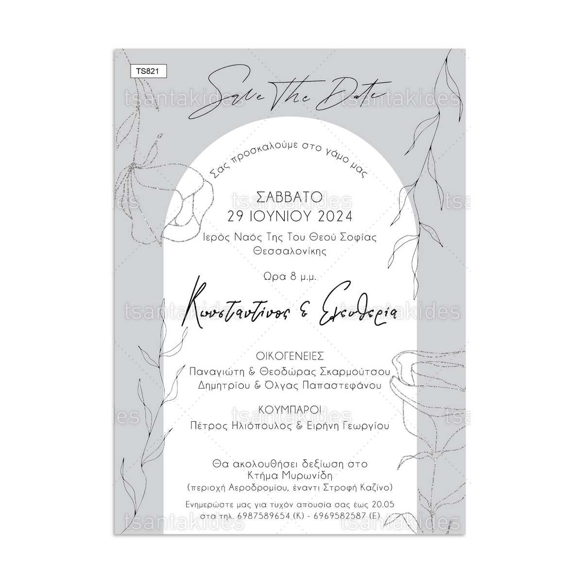 H κάρτα του προσκλητηρίου είναι τυπωμένη σε λευκό ματ χαρτί 250γρ.