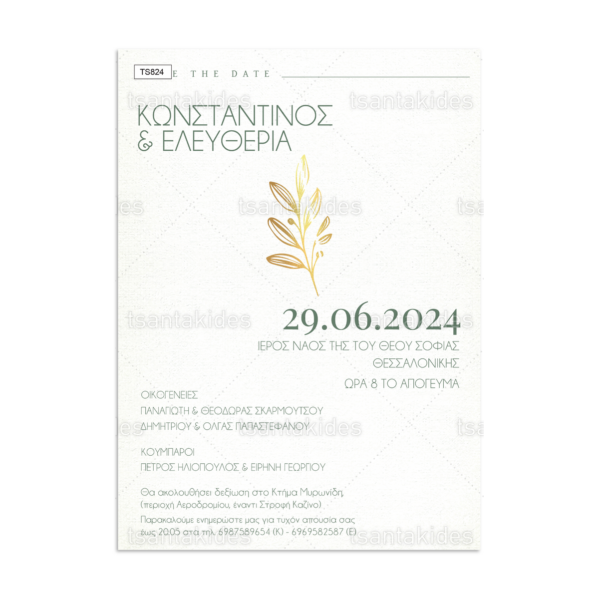H κάρτα του προσκλητηρίου είναι τυπωμένη σε λευκό ματ χαρτί 250γρ.