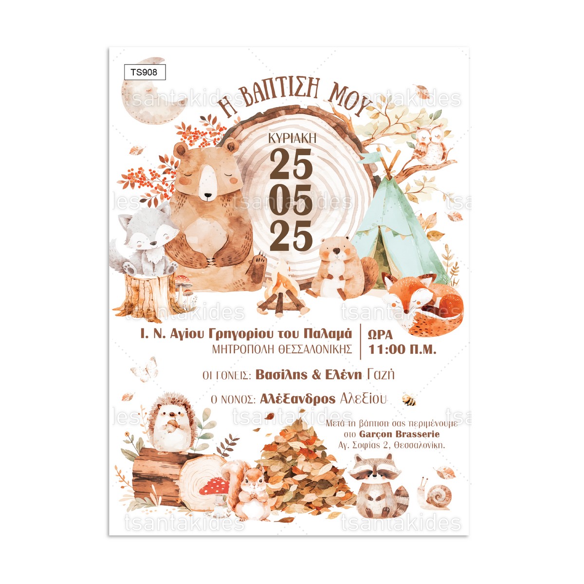 H κάρτα του προσκλητηρίου είναι τυπωμένη σε λευκό ματ χαρτί 250γρ.